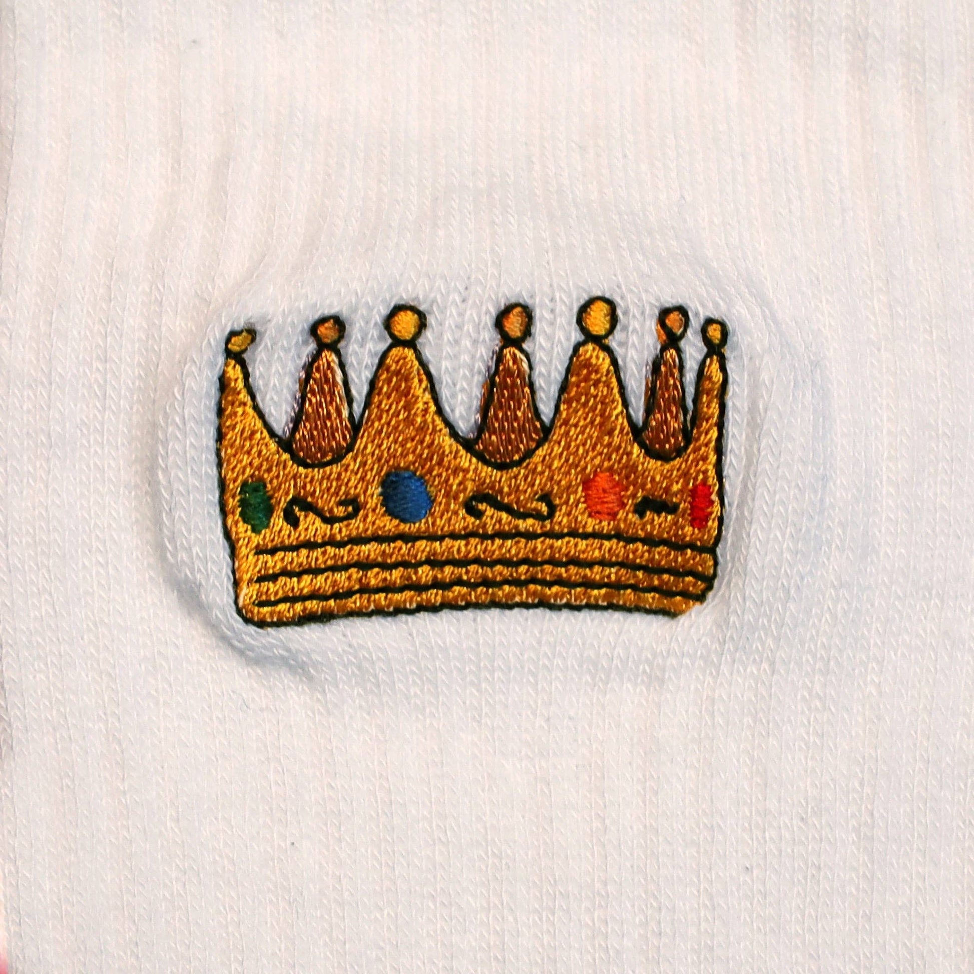 Crown your feet with these comfy white crew socks, featuring an embroidery that will make you feel like royalty (even on your most mundane days).