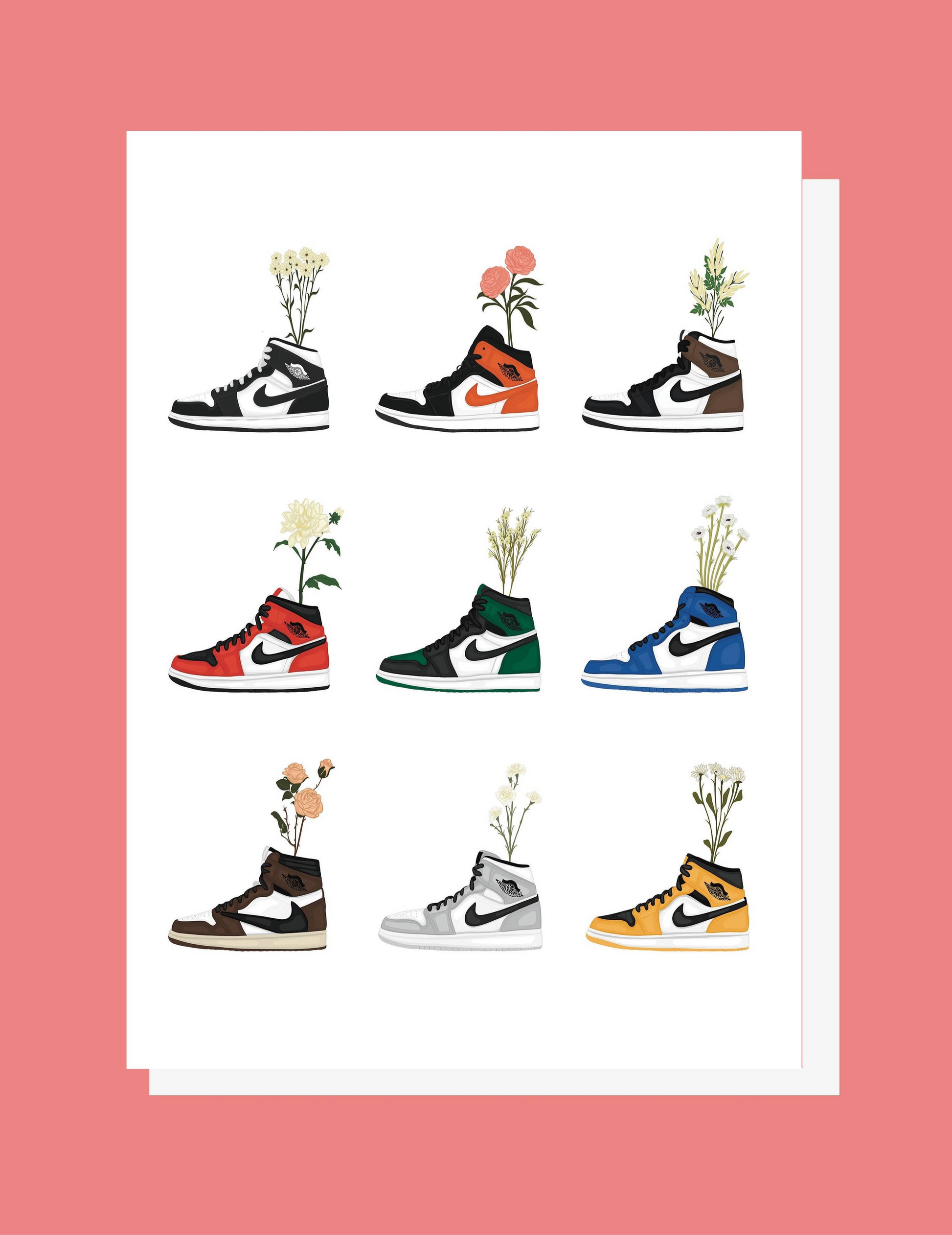 The perfect card for your favorite sneaker head. Beautiful enough to use as an art piece or greeting card. Size: 5"x7" Card Inside and back of card are blank Included: White A7 Envelope Colors may differ slightly from monitor to print.